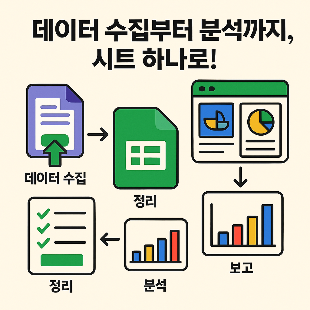 데이터 분석, 거창하게 들리시나요? 사실은 우리가 매일 쓰는 구글 스프레드시트만으로도 데이터 수집 → 정리 → 분석 → 시각화 → 보고까지 전 과정을 자동화할 수 있습니다. 이번 글에서는 실무에 유용한 스프레드시트 기반 데이터 처리 루틴을 단계별로 안내드립니다.