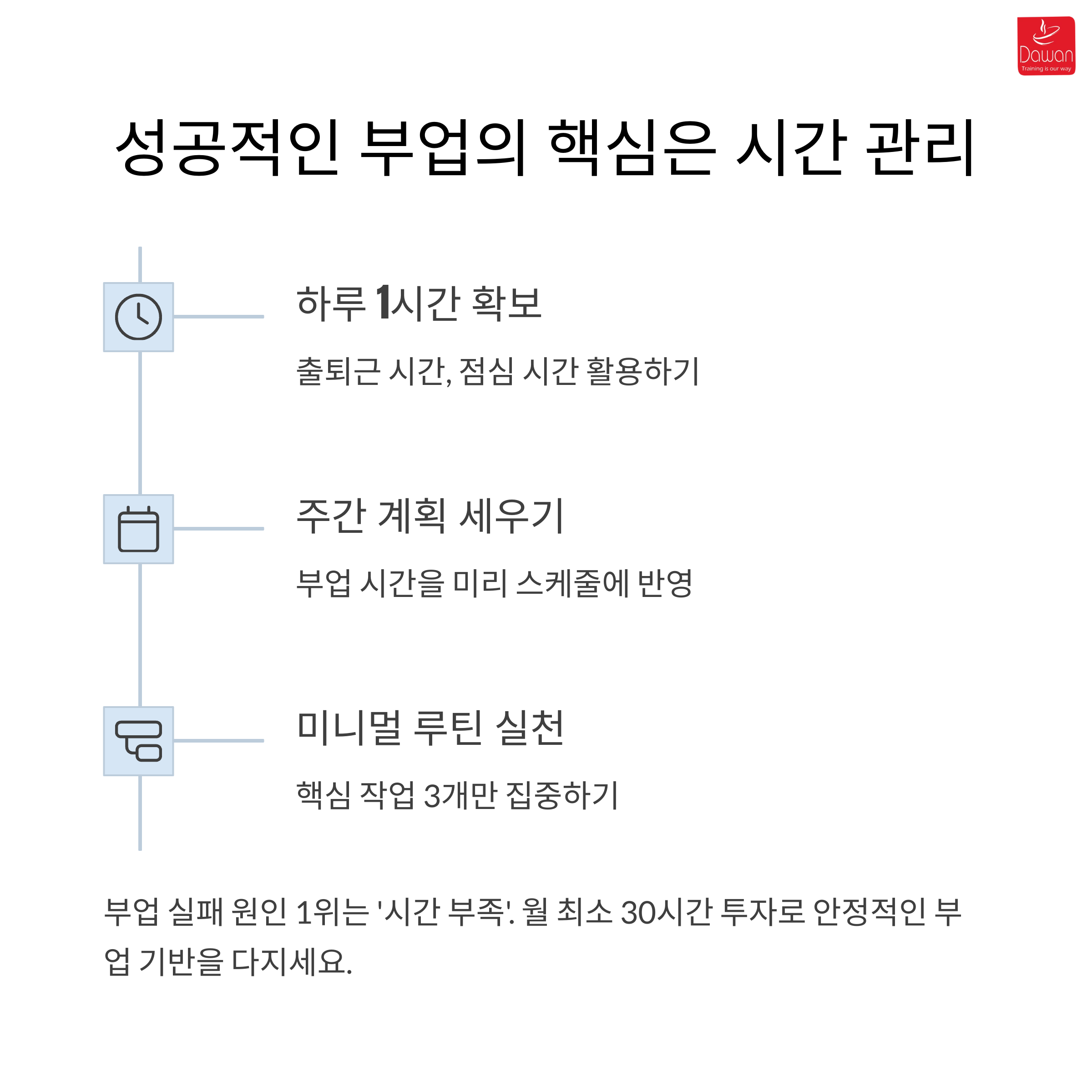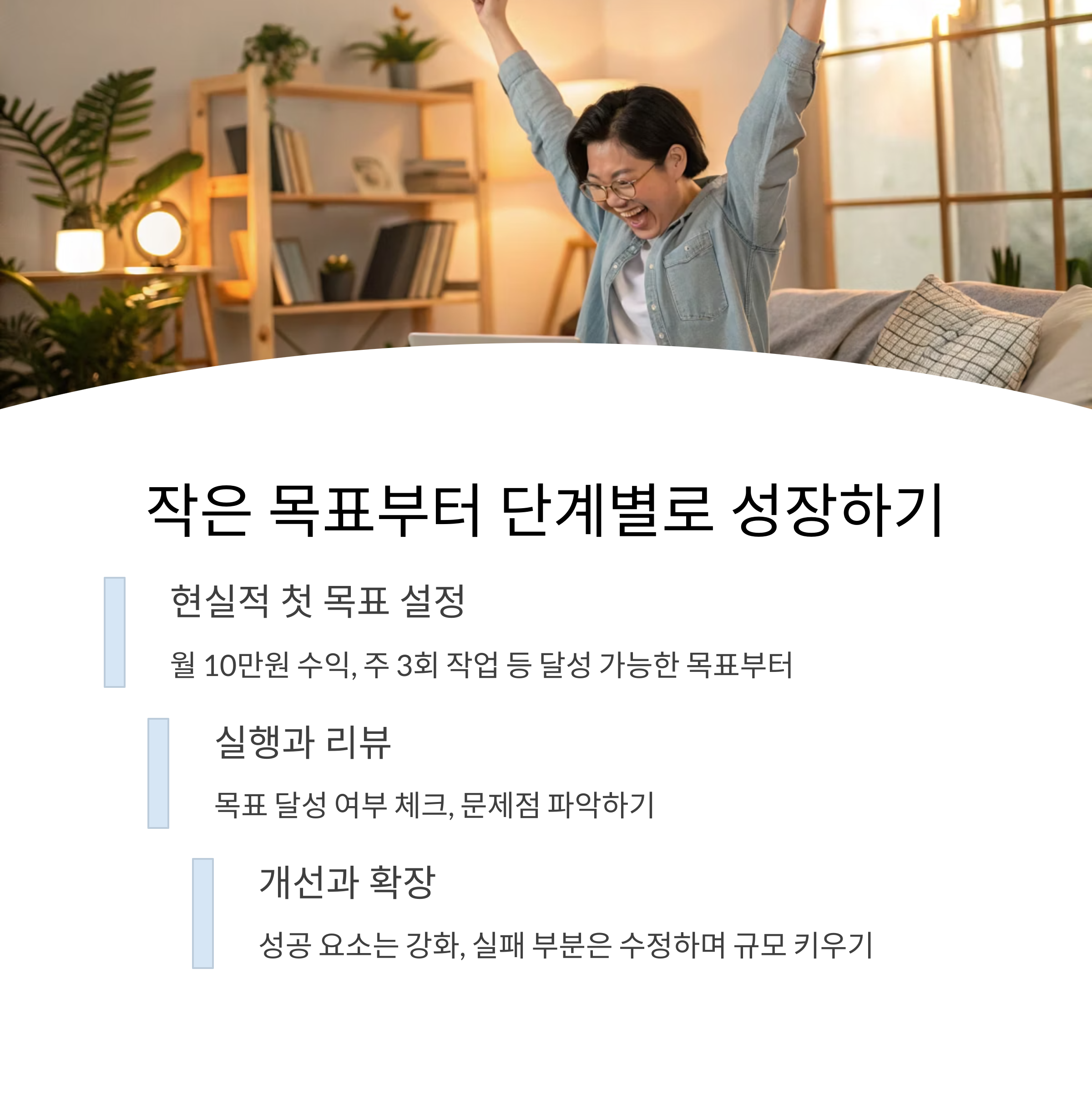 | 다양한 수익 구조 마련 | 꾸준한 실천과 목표 관리 | 리스크 사전 대비 |