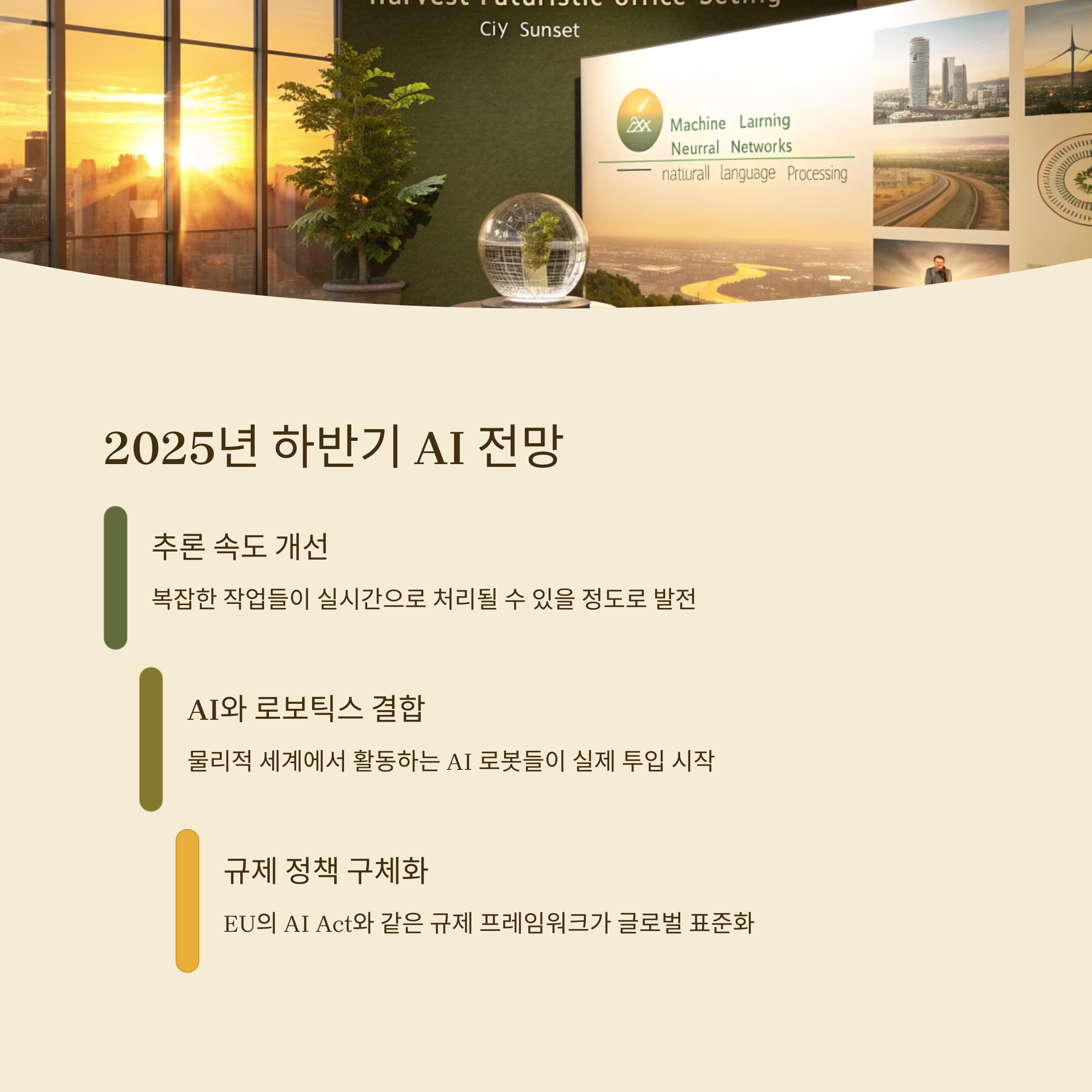 2025년 하반기에는 AI 모델의 추론 속도와 효율성이 크게 개선될 것으로 예상됩니다. 현재 몇 초에서 몇 분 걸리던 복잡한 작업들이 실시간으로 처리될 수 있을 정도로 발전할 가능성이 높아요.